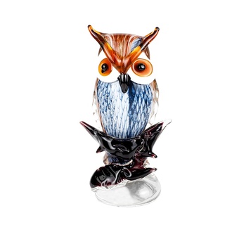Sculpture de hibou en verre d'art avec des accents marins, pièce de décor fantaisiste. Idéal pour les accents de maison, cadeaux
