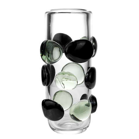 Vase en cristal texturé fait main avec bouteille décorative artistique de conception de galets noirs et verts pour la maison