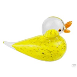 Figurine de canard en verre d'art avec un design texturé jaune, statue décorative fantaisiste. Idéal pour la décoration intérieure, objets de collection