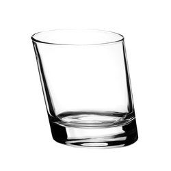 Gobelet à whisky en verre transparent incliné de 300ml, design asymétrique. Idéal pour les spiritueux, les cocktails, ajoutant une touche moderne aux verres.