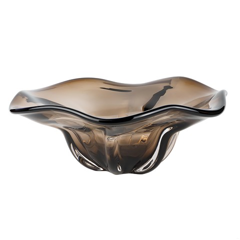 チョコレート色のムラノセンターピースグラスボウル、波状のエッジ、テクスチャベース。理想的なホームインテリア、アートディスプレイ