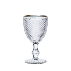 クリスタルワイングラス、金縁取り & ダイヤモンドカットデザイン。赤いワイン、ディナー、ヴィンテージエレガンスを加えるのに理想的です。