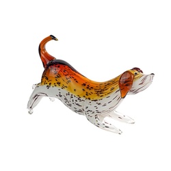 アートグラス犬の彫刻、気まぐれな装飾作品。家庭用アクセントに理想的で、ペットにインスパイアされた芸術をインテリアに追加します。